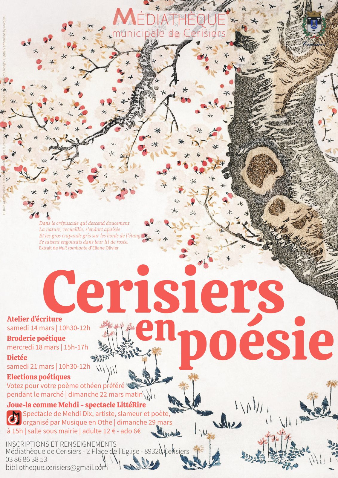Kirschbäume in Poesie Médiathèque 2 Place de l'Église 89320 CERISIERS Route anzeigen